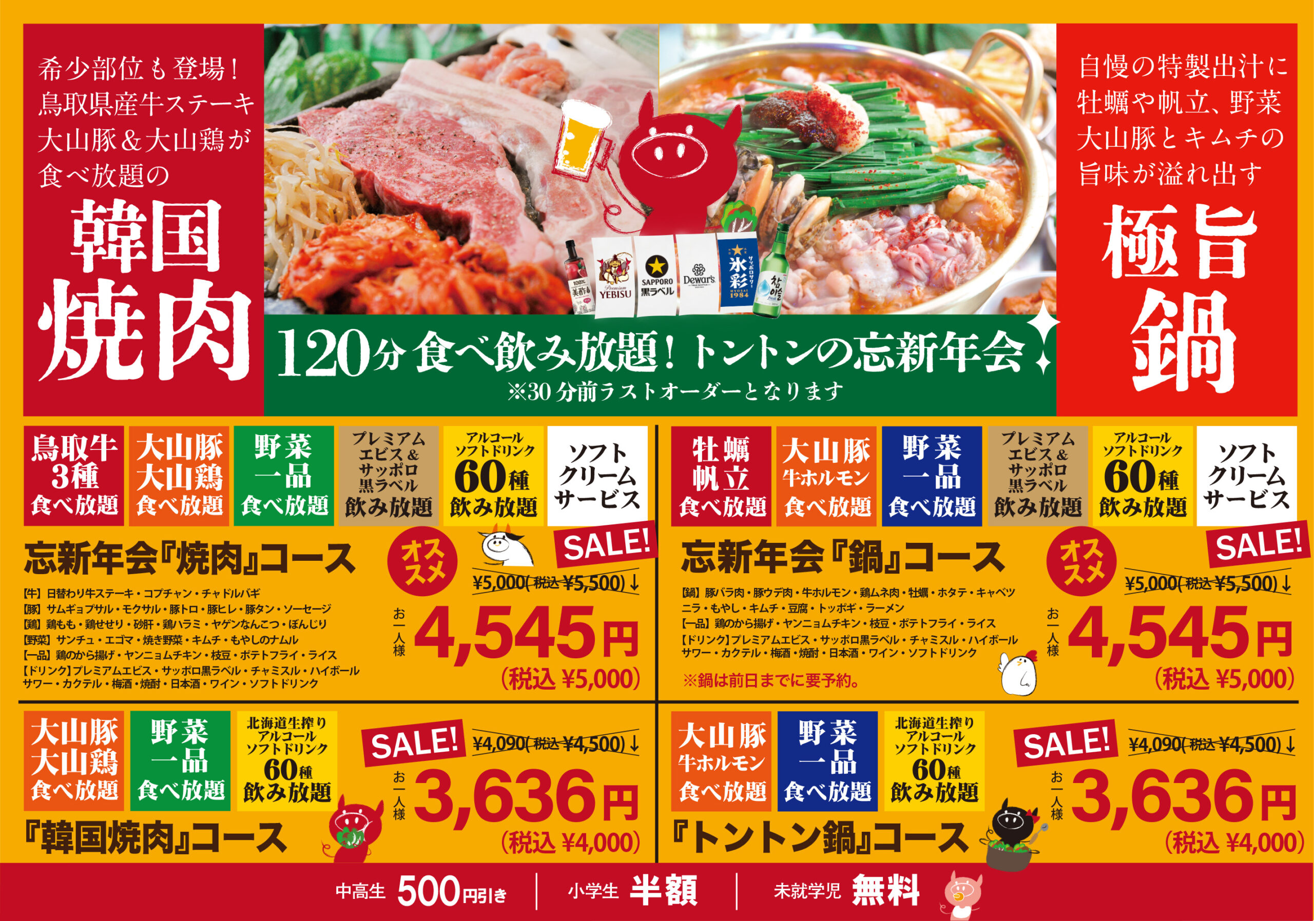鳥取 焼肉 食べ放題・飲み放題 忘年会・新年会